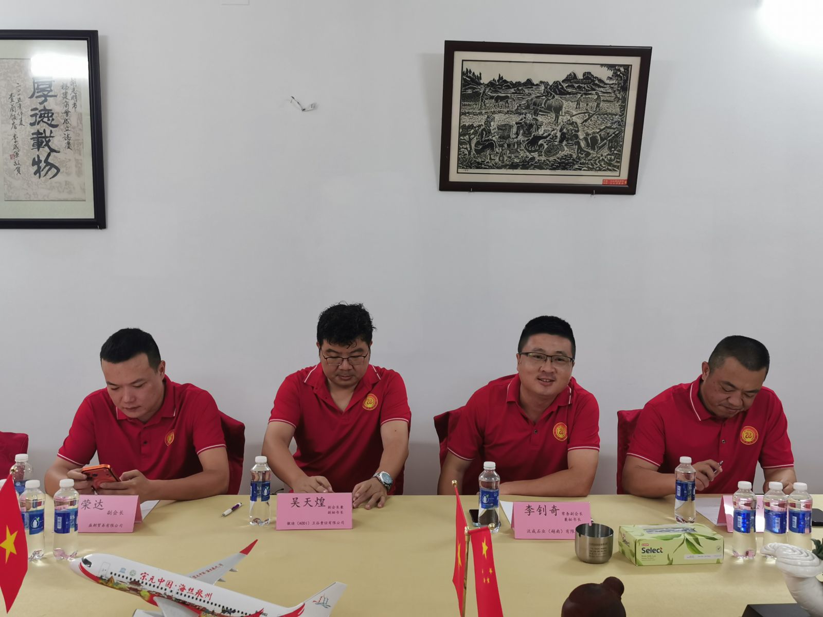 李钊奇秘书长代表商会对泉州市侨界青年联合会副会长郭永尚一行的来访表示热烈欢迎,并通过宣传片介绍了我会的发展历程、组织架构、会员行业分布及代表性企业,重点分享了我会多年来在促进中越经贸往来、推动两国地方政府与企业合作方面取得的积极成果。